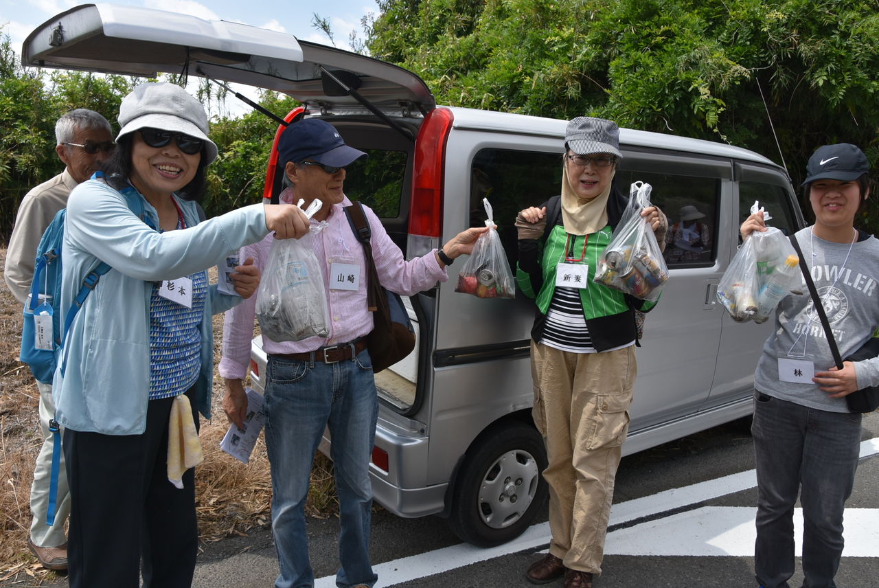 その後、グラウンド湿地に移動しゴミ拾い。プラスチックのゴミの多さにビックリ。約1時間で持参したゴミ袋がなくなりゴミ拾いを終了しました。
